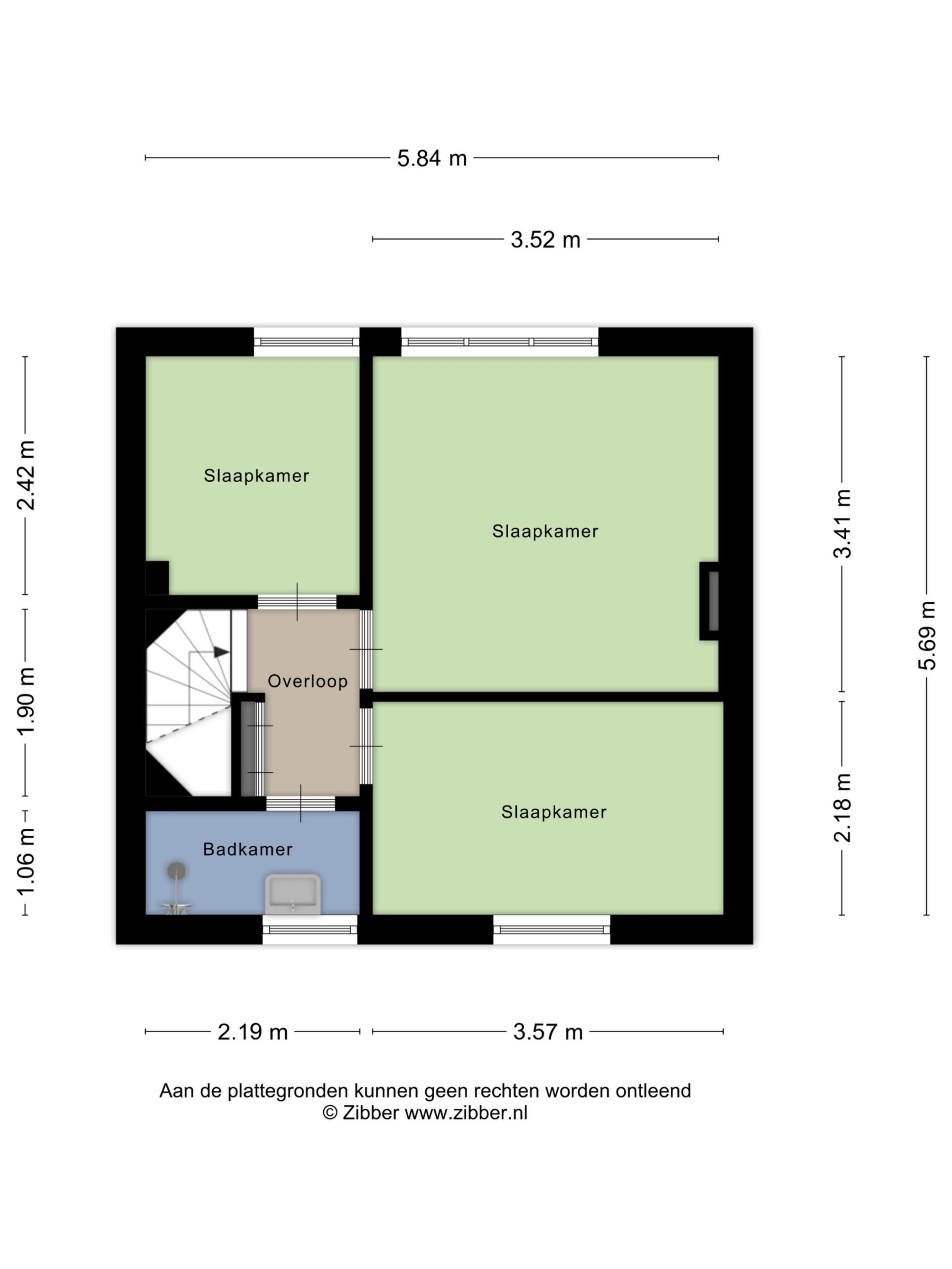 Eerste verdieping: overloop; drie slaapkamers; badkamer met wastafelmeubel en douche.