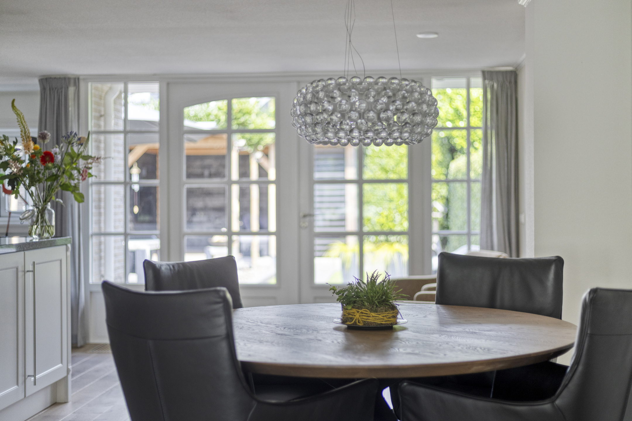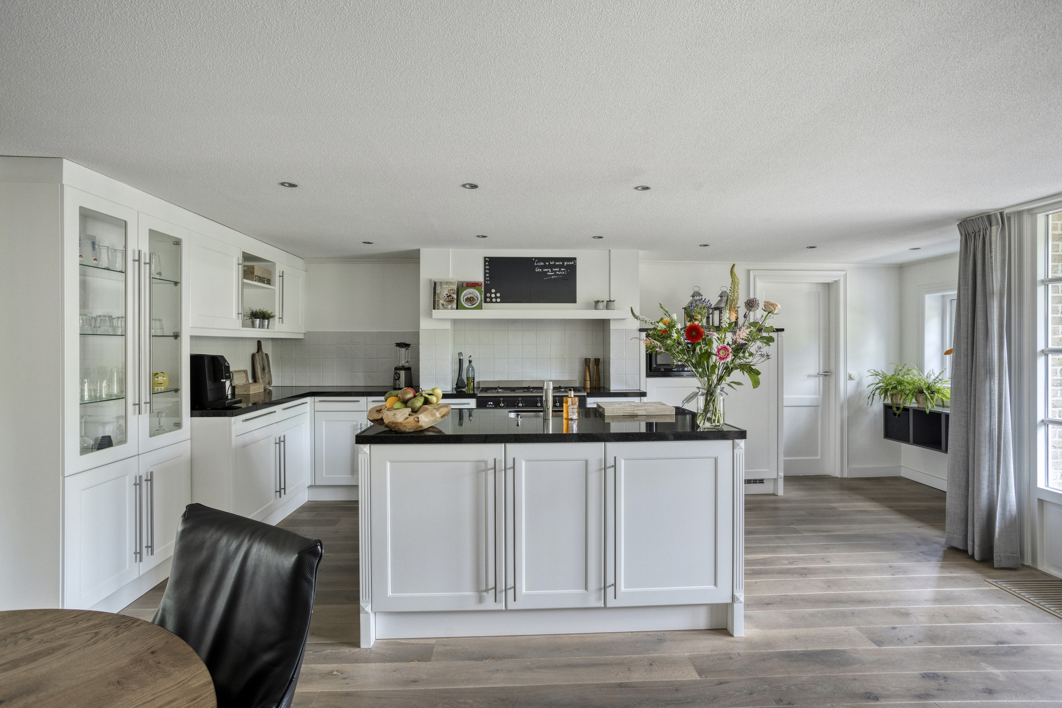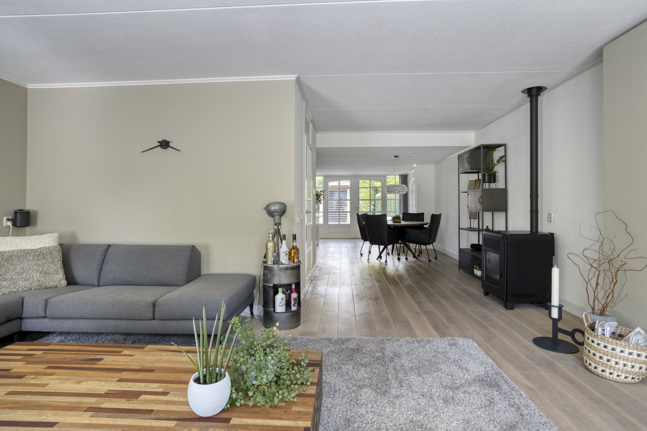 Indeling: zijentree; hal met trapopgang en toilet; woonkamer met sfeervolle pelletkachel; eethoek met tuindeuren; luxe keuken met spoeleiland, 5-pitsgasfornuis met oven; afzuigkap, magnetron en vaatwasser; bijkeuken met witgoedaansluiting en achterentree; aangebouwde garage.