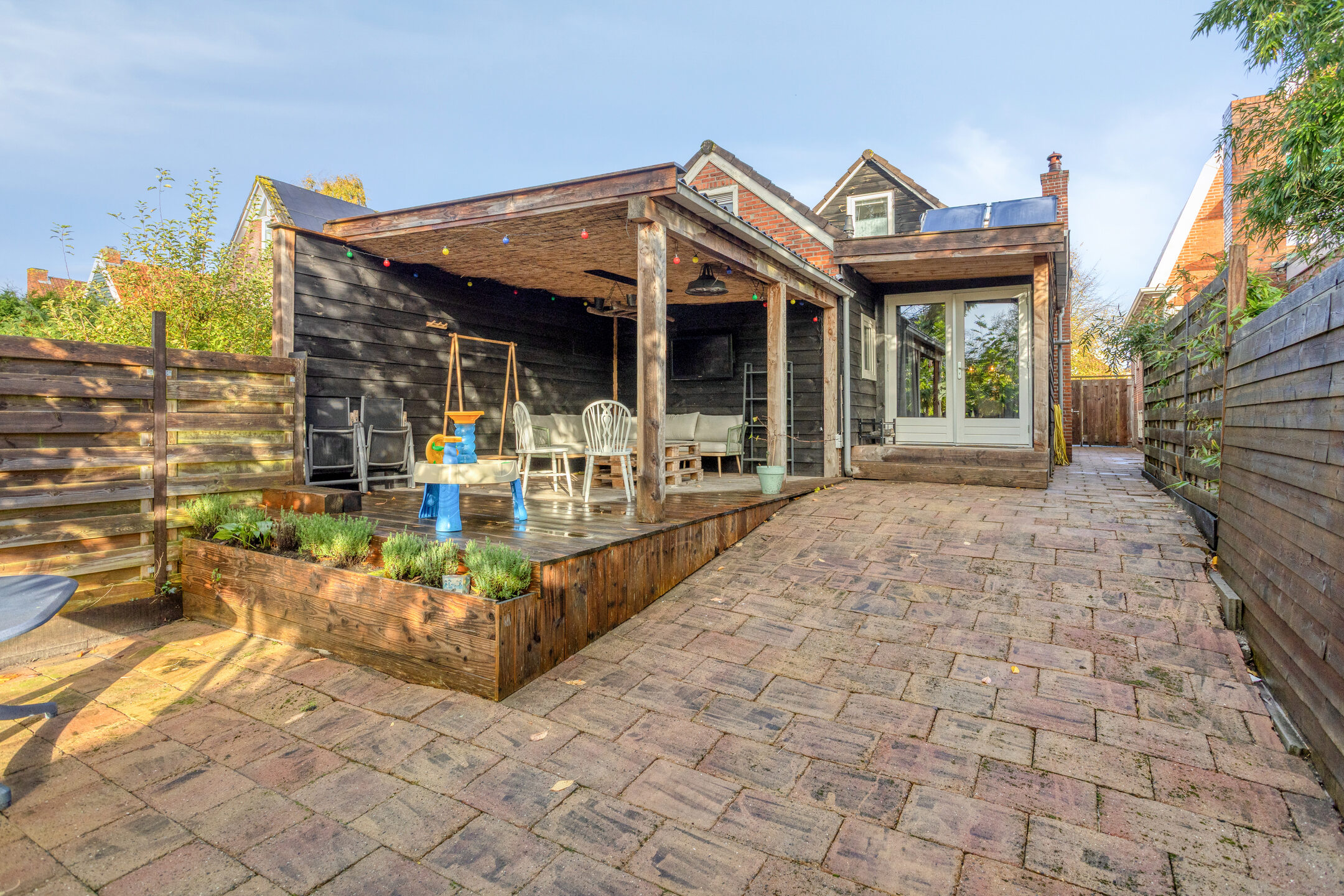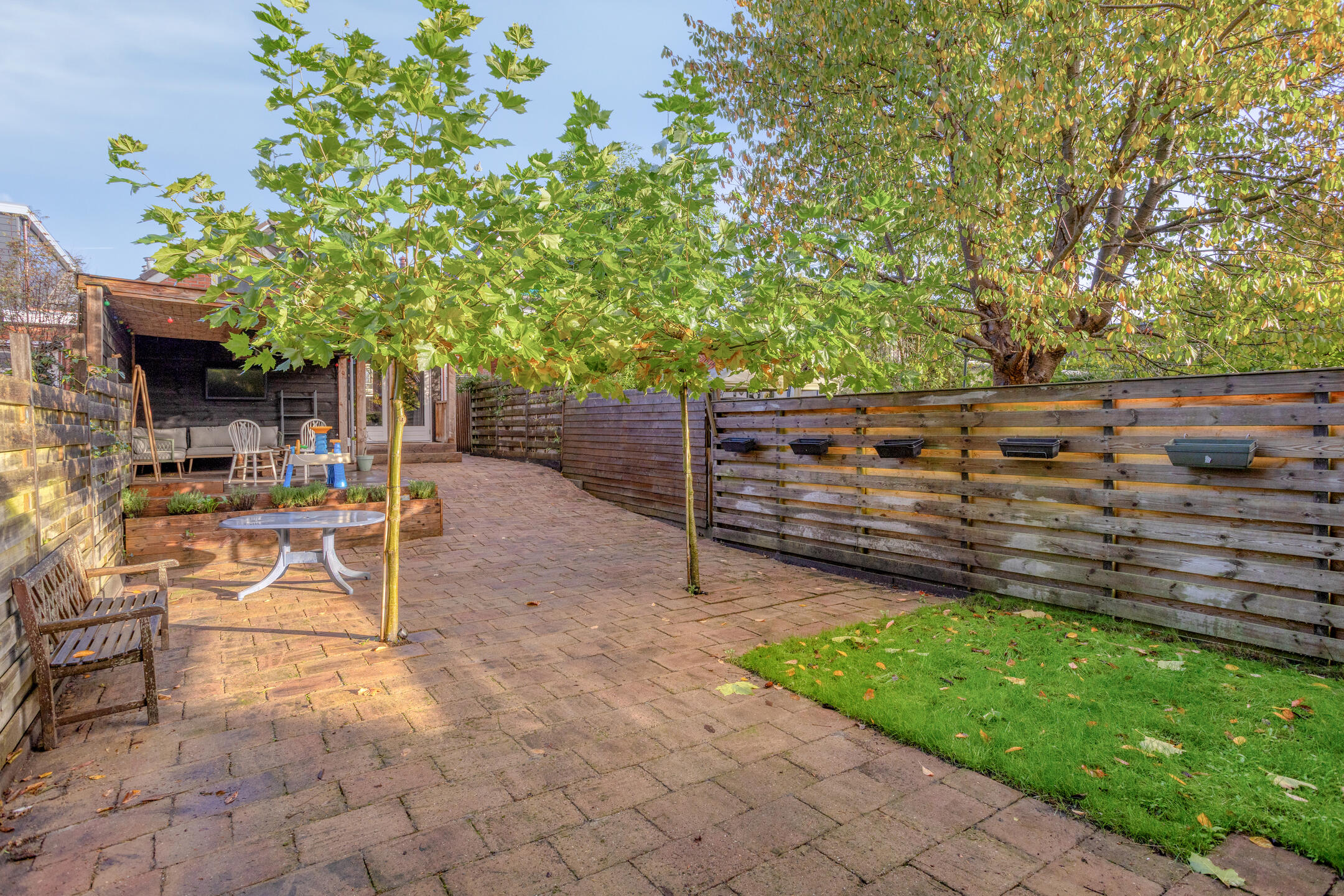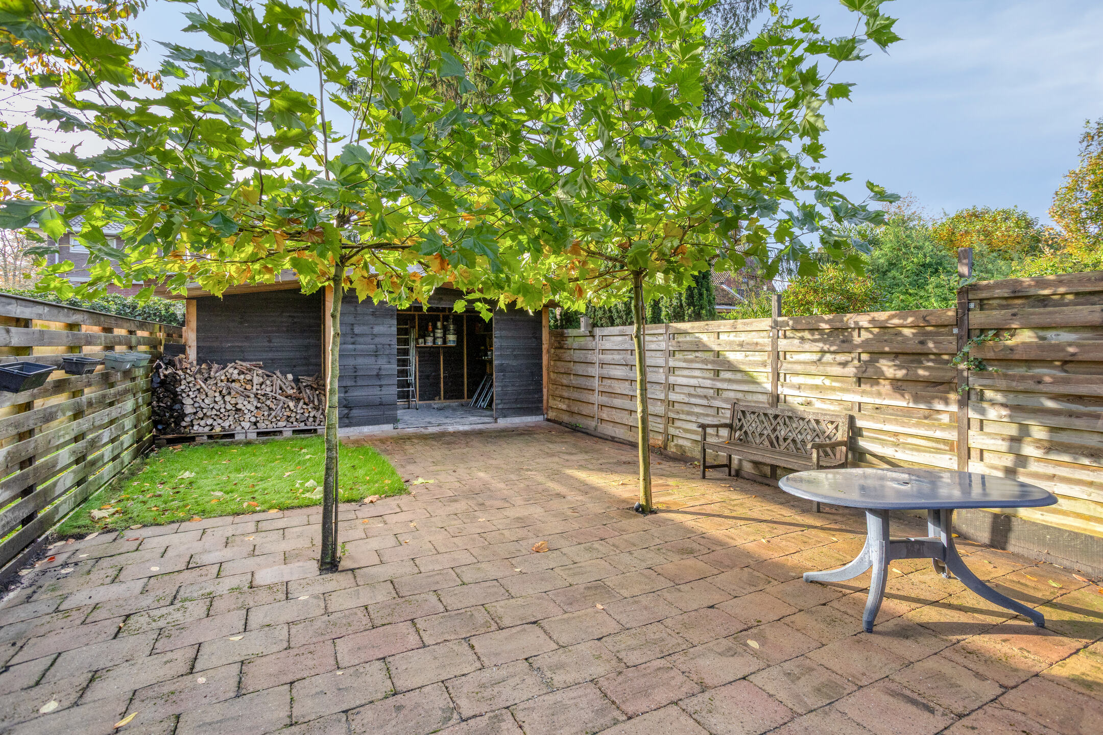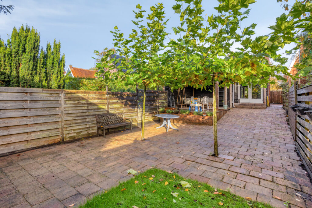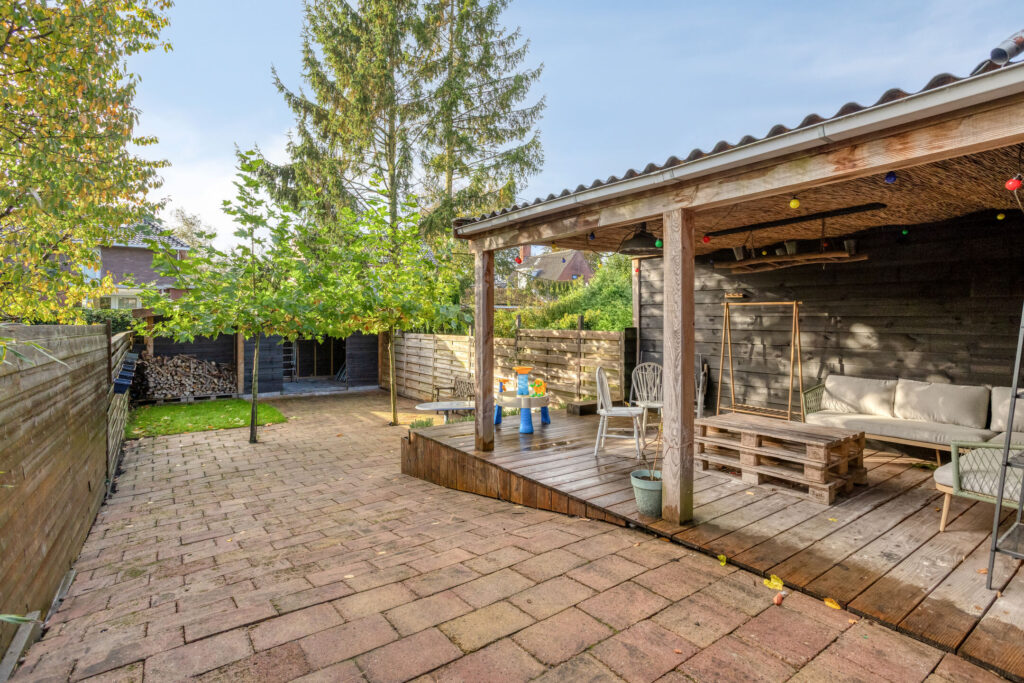 De tuin van de woning ligt op het zuiden en beschikt over een vrijstaande houten schuur. Aan de achterzijde van de woning is sfeervolle aangebouwde houten overkapping met veranda gerealiseerd. In zomer, lente en herfst is er altijd wel een goed plekje in de tuin te vinden om even tot rust te komen.