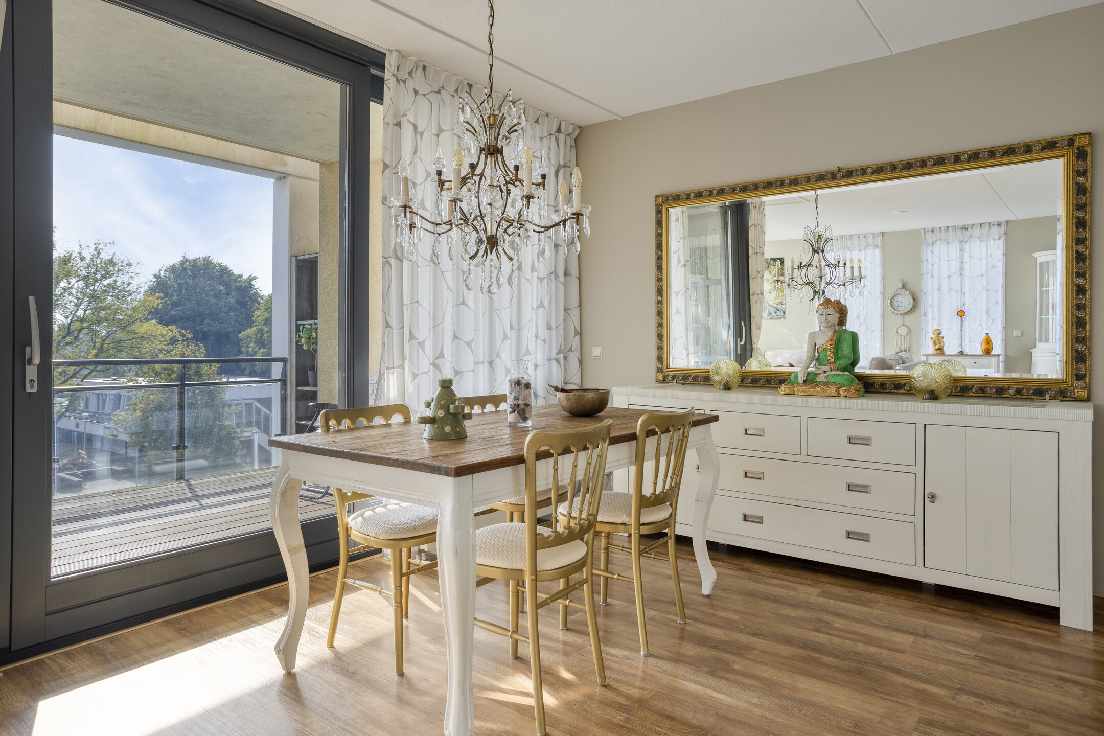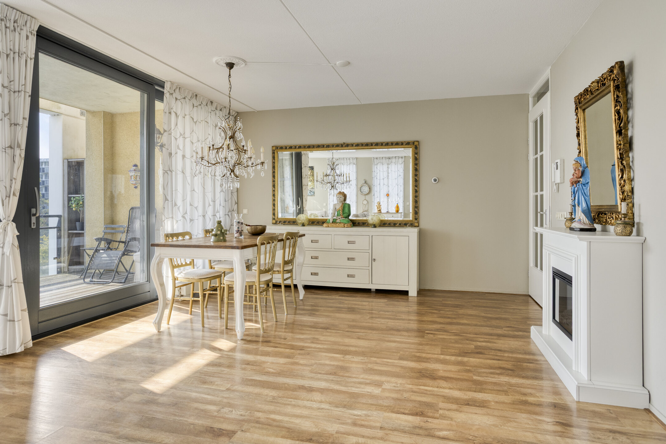 - zonnig balkon met houten vloer en buitenstopcontact;
