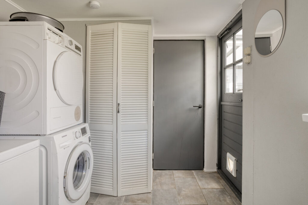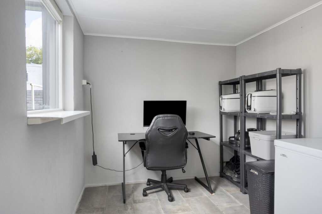 Bijkeuken met cv-opstelling en achter entree; via de woonkamer is de voormalige garage te bereiken(nu praktijkruimte/speelkamer)