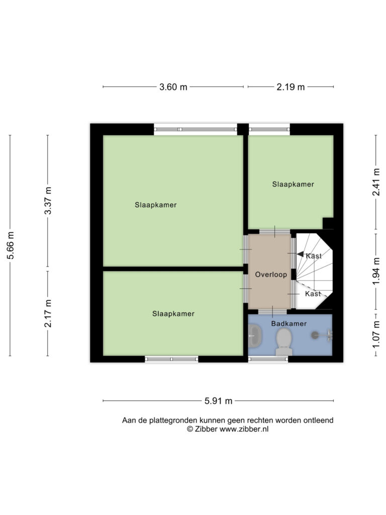 Eerste verdieping: overloop; drie slaapkamers; badkamer met douche, toilet en wastafelmeubel.