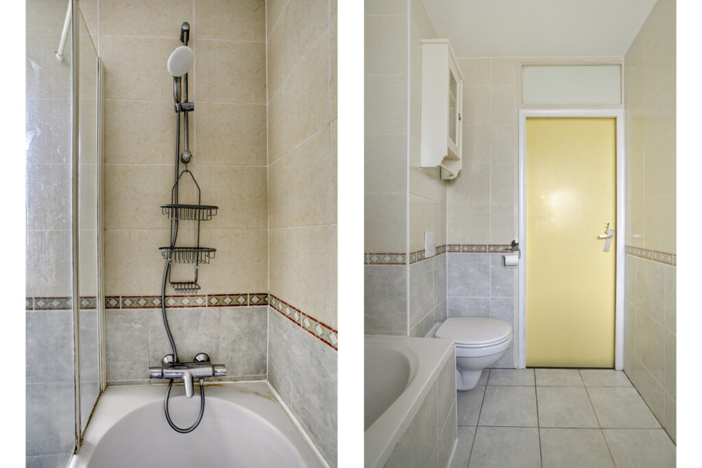 Eerste verdieping: overloop met bergkast; drie slaapkamers; badkamer met douche/ligbad, wastafel en tweede toilet.
