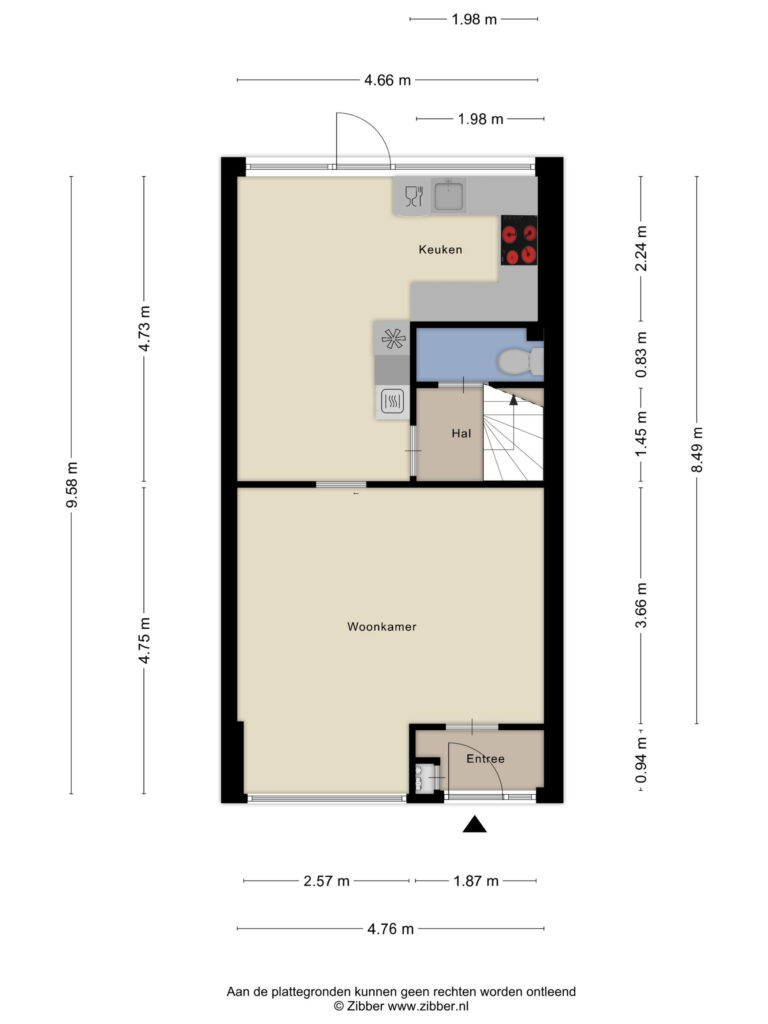 Indeling: entree/hal met meterkast; straatgerichte lichte doorzonwoonkamer; halfopen keuken met keukenopstelling die voorzien is van inductiekookplaat, afzuigkap, vaatwasser, koelkast en magnetron; tussenhal met trapopgang en toilet.