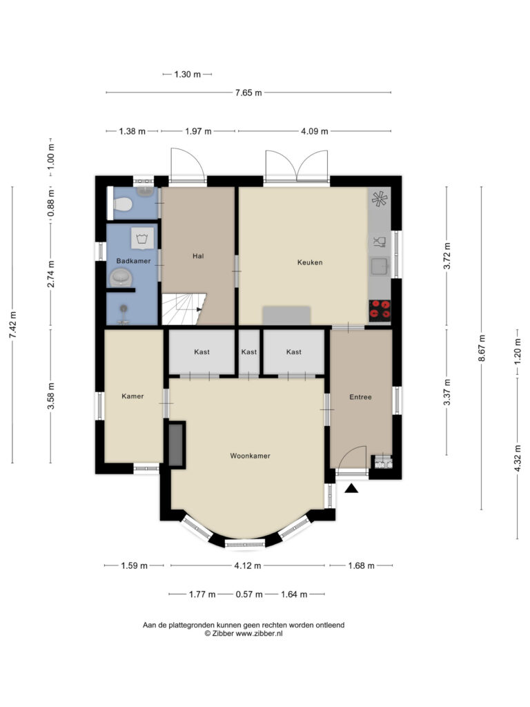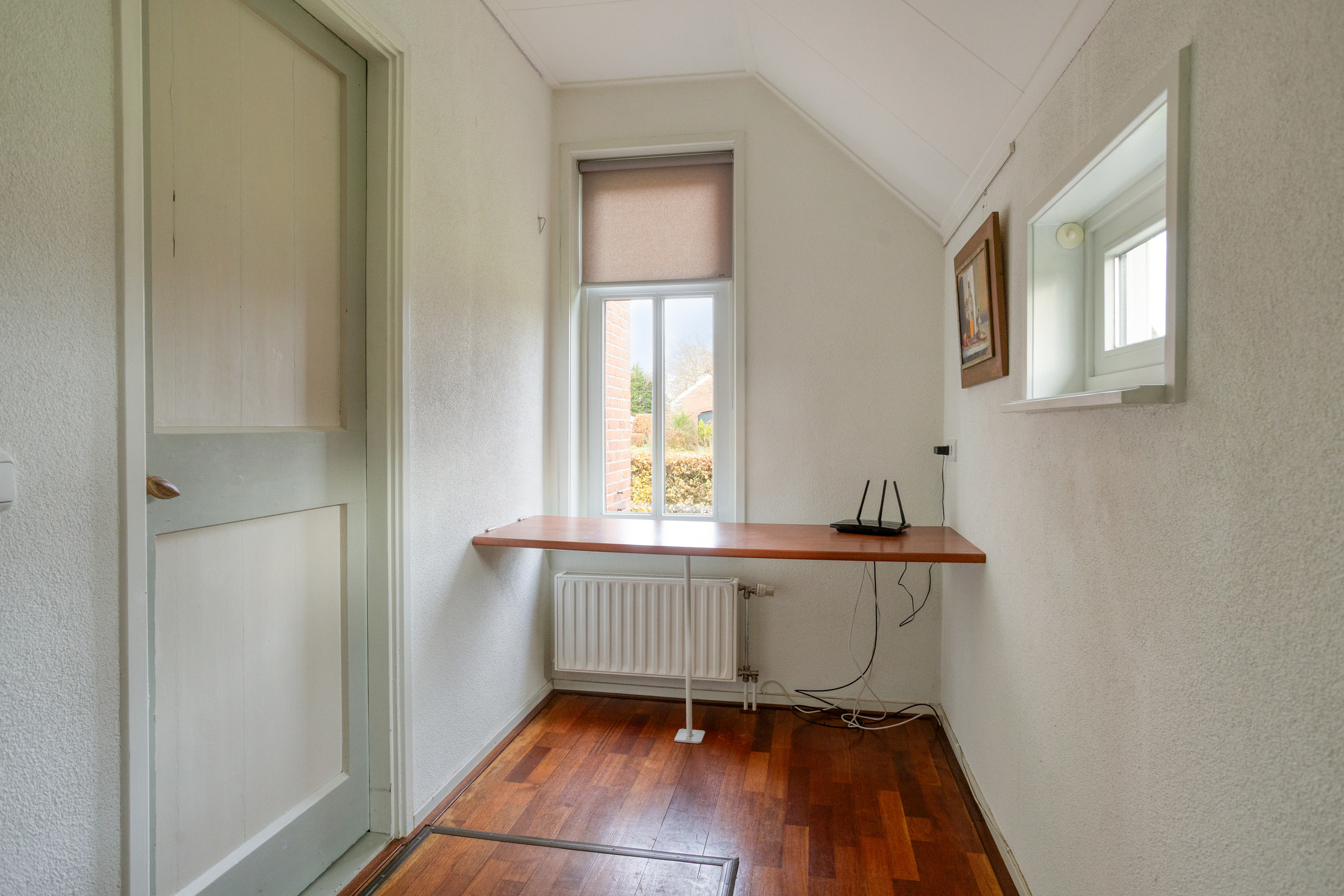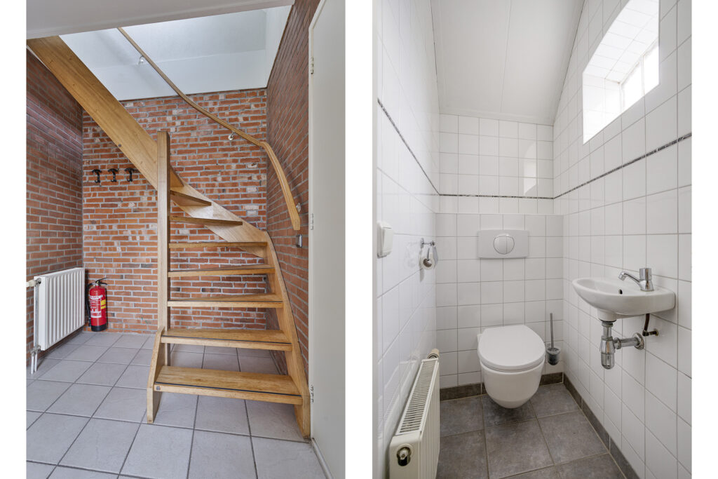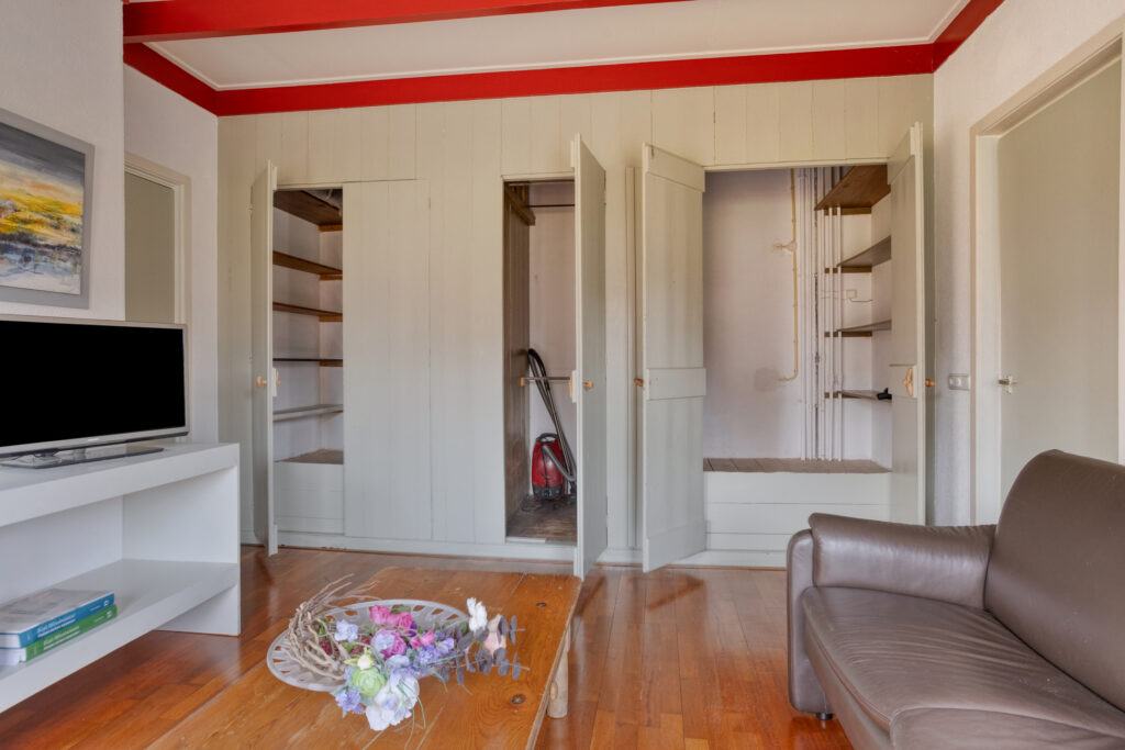 Indeling: voorentree; woonkamer met veel lichtinval en authentiek bedstedes (thans kastruimte); studeer-/hobbykamer; gesloten woonkeuken met terrasdeuren en moderne keukenopstelling die voorzien is van inductiekookplaat, afzuigkap, vaatwasser, koelvriescombinatie en combioven; achterhal met trapopgang, achterentree en toilet; badkamer met douche, wastafel en witgoedaansluiting.