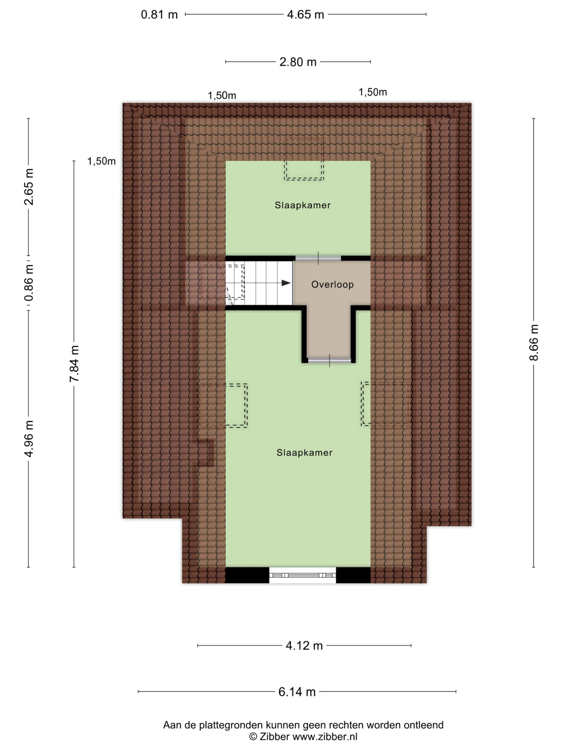 Eerste verdieping: overloop; twee slaapkamers.