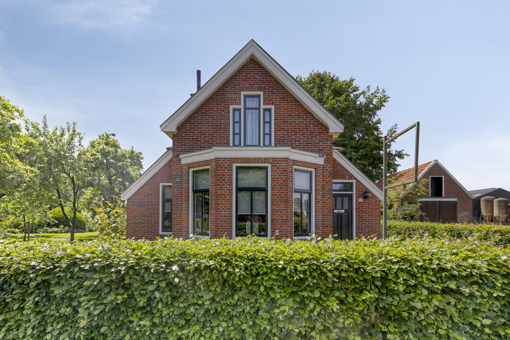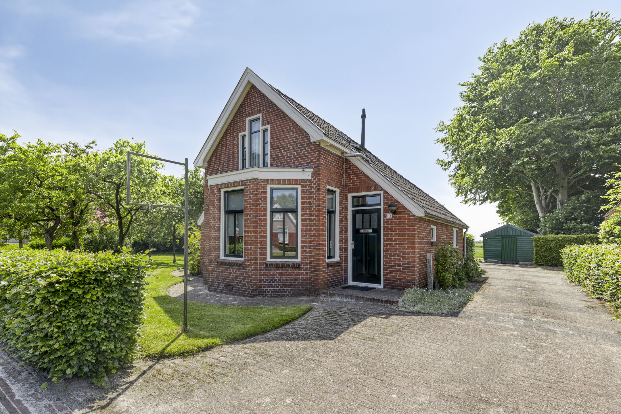 Het pand werd oorspronkelijk gebouwd bij boerderij nummer 186 en kenmerkt zich door zijn authentieke architectuur. De rode bakstenen gevels, het zadeldak met strakke windveren en het wolfseind aan de achterzijde geven de woning een robuuste en tijdloze uitstraling. Een echte blikvanger is de voorerker met ramen aan drie zijden, die zorgt voor een prettige lichtinval en een fraai straatbeeld. Boven de erker bevindt zich een driedelig zolderraam met roeden, passend bij de bouwperiode en het monumentale karakter. Naast het historische karakter is de woning in de loop der jaren gemoderniseerd. De keuken is vernieuwd in 2022, de woning beschikt over 6 zonnepanelen (geplaatst in 2024) en heeft een energielabel C. Verder zijn er een garage en een eigen oprit aanwezig, wat zorgt voor comfortabel parkeren en extra bergruimte.