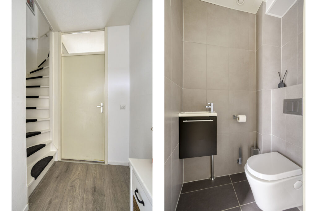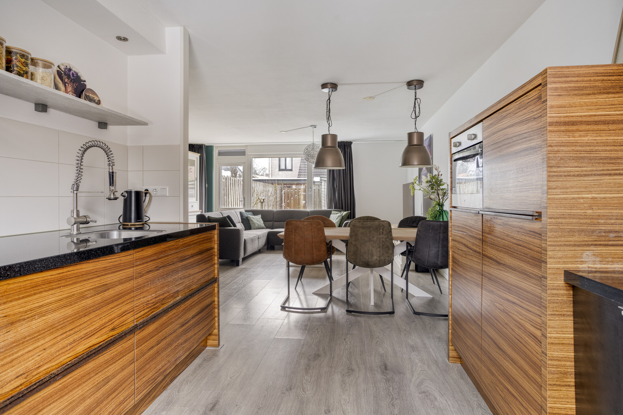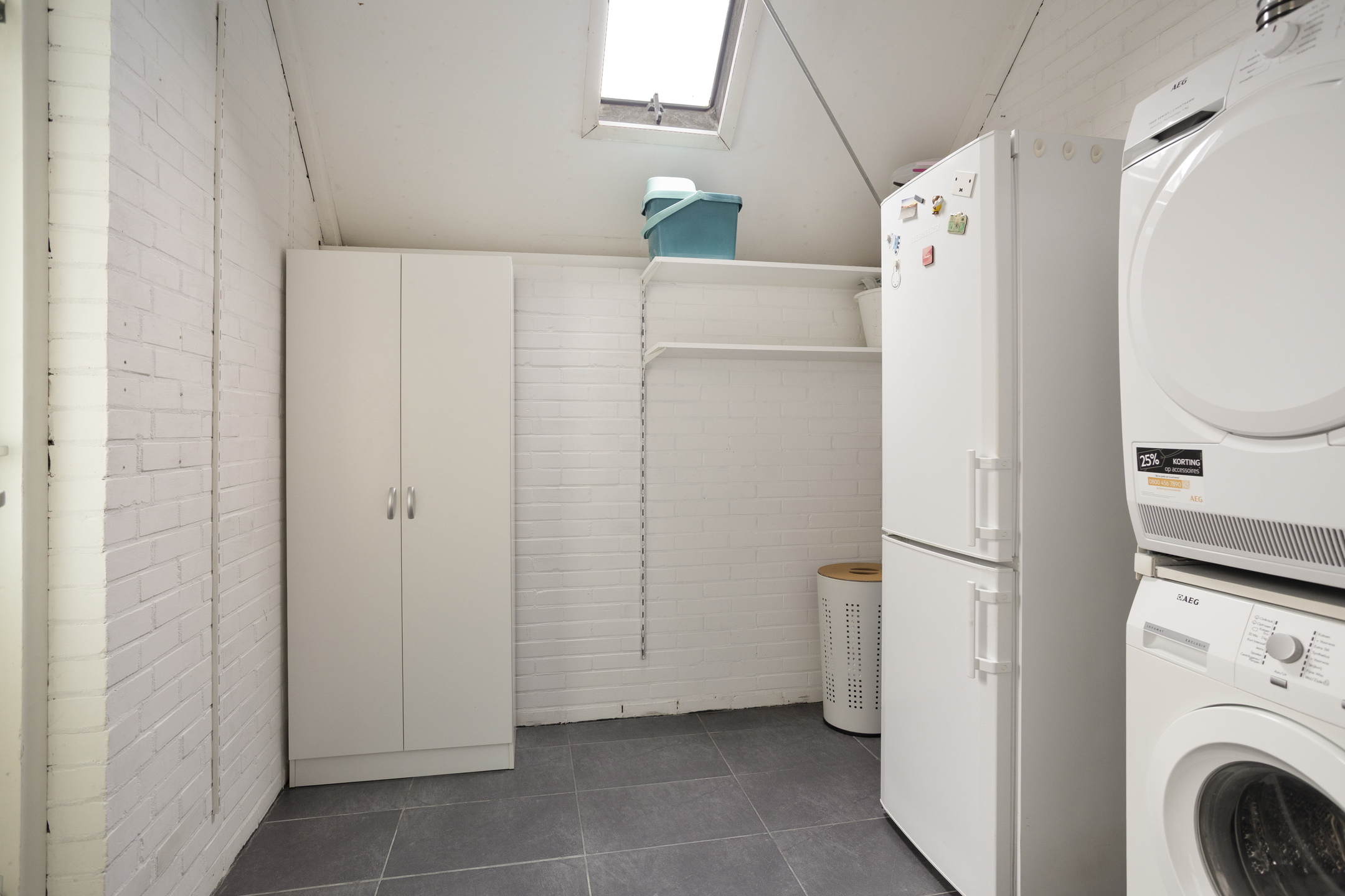 Begane grond: entree/hal; met toilet en toegang naar bijkeuken/berging; tuingerichte woonkamer met deur naar tuin en provisiekast; open keuken voorzien van gasfornuis, afzuigkap, vaatwasser, koelvriescombinatie en vaatwasser.