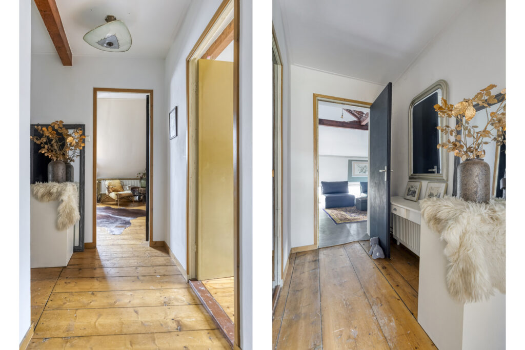Eerste verdieping: ruime overloop met toegang tot maar liefst vier royale slaapkamers – elk met eigen charme en volop ruimte voor gezin, logees of hobby.