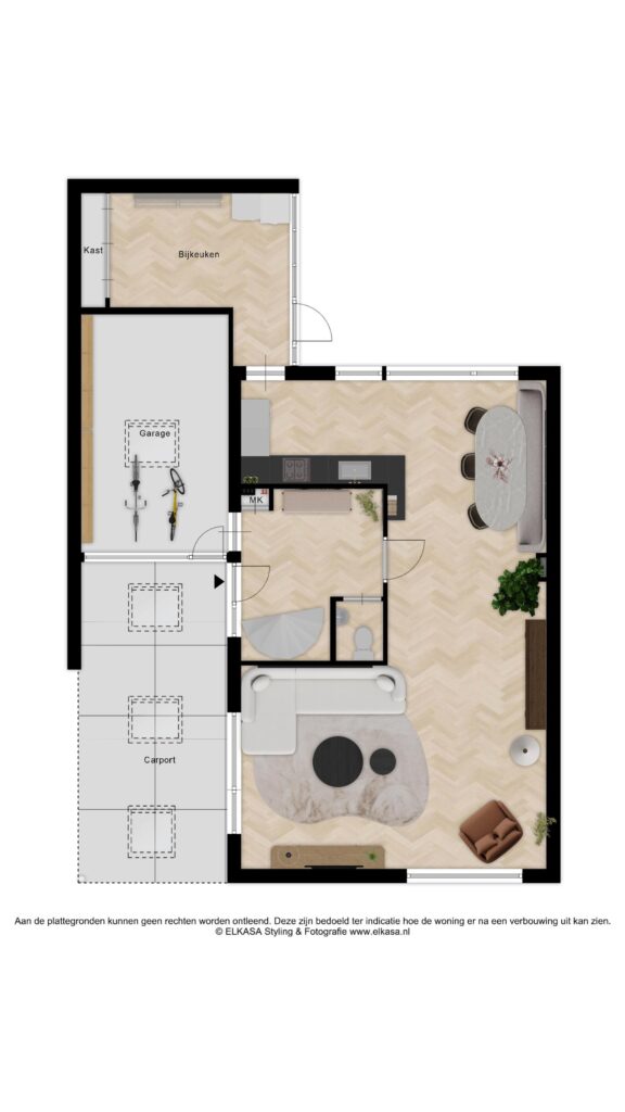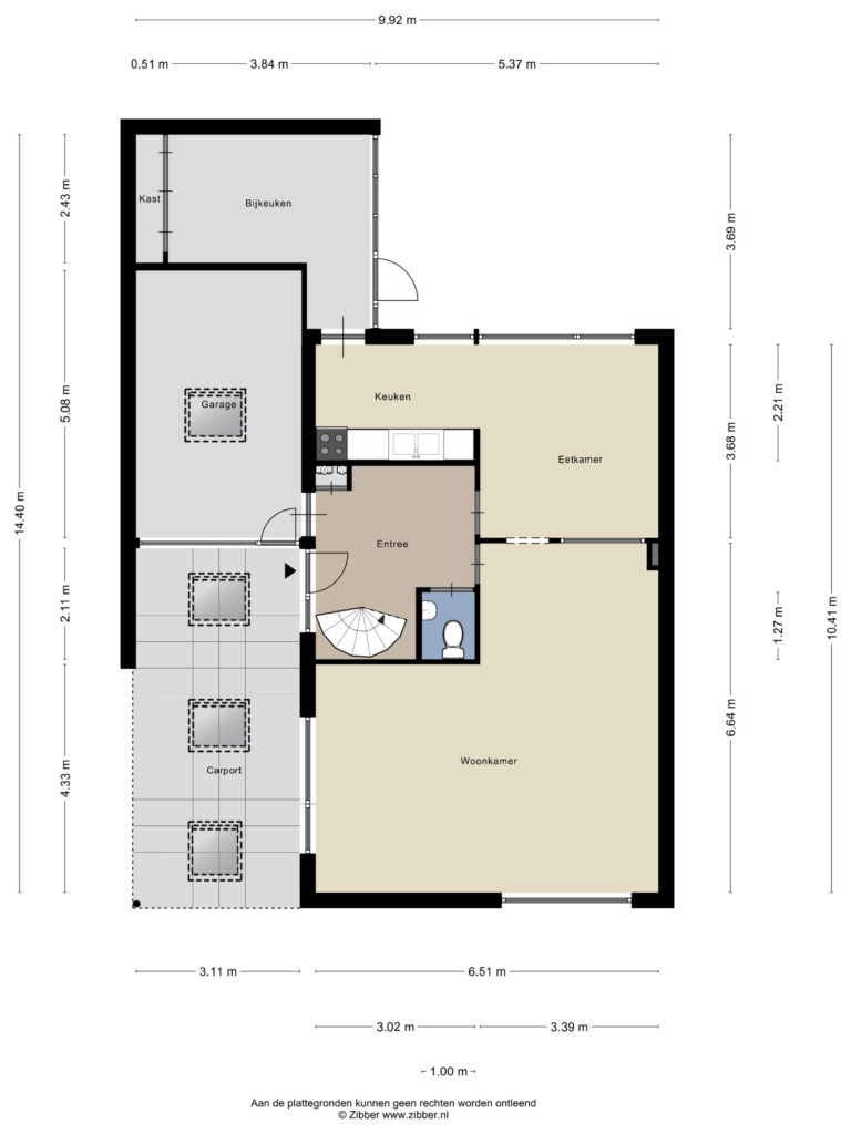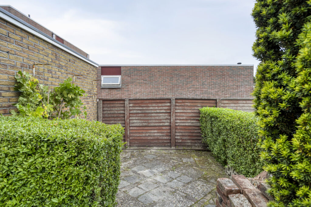 Indeling: entree; hal met trapopgang, entree garage en toilet; straatgerichte woonkamer; gesloten keuken met moderne keukenopstelling; bijkeuken met achterentree.