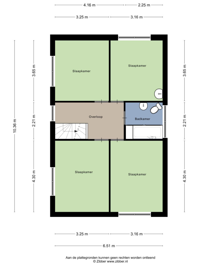 Eerste verdieping: overloop; vier slaapkamers; badkamer met ligbad, wastafel en toilet.
