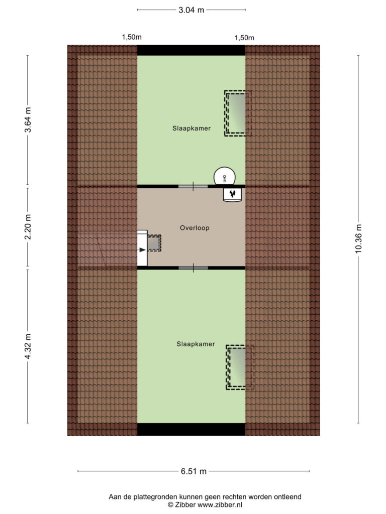 Tweede verdieping: overloop met cv-opstelling; twee ruime slaapkamers met meerdere dakramen.