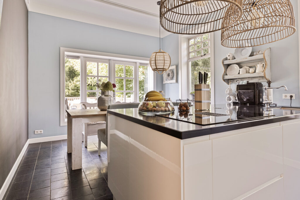 - keukenopstelling is voorzien van inductiekookplaat met geïntegreerde afzuiging, oven, koelkast en vriezer;