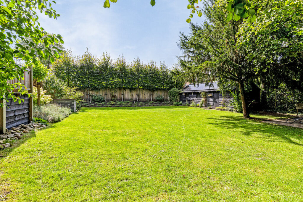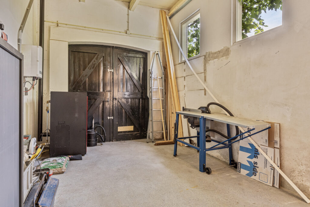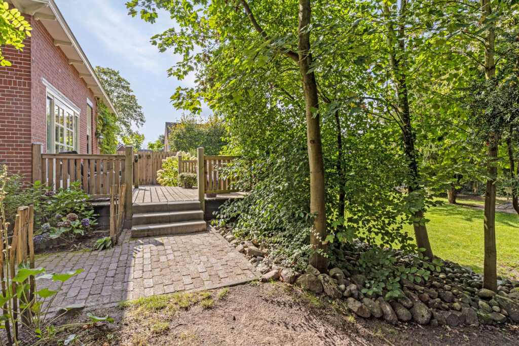 Indeling: zijentree; hal met trapopgang en toilet; straatgerichte sfeervolle woonkamer van met open haard; gang; woonkeuken met tuindeuren naar het terras en moderne keukenopstelling uit 2021; via gang is tevens bereikbaar de garage, bijkeuken(mogelijke studeerkamer) en vervolgens een wasruimte.
