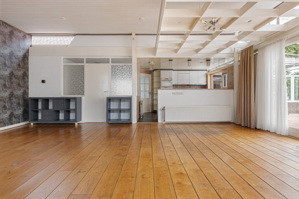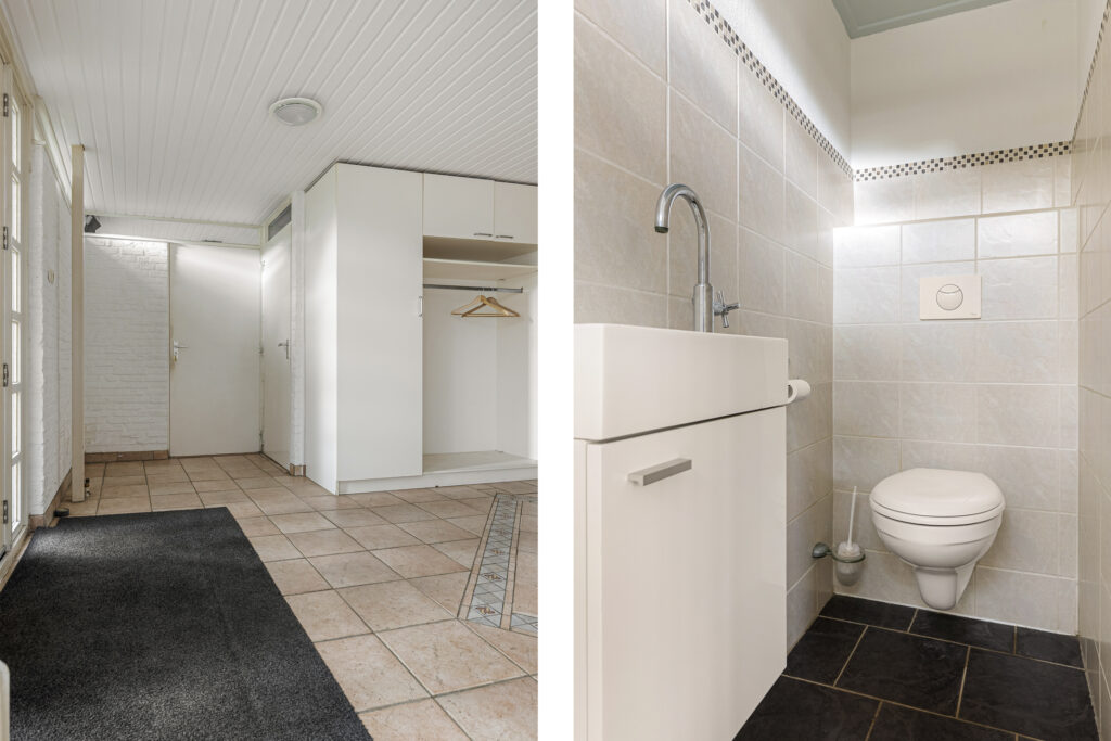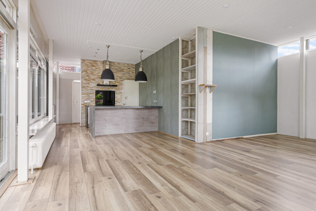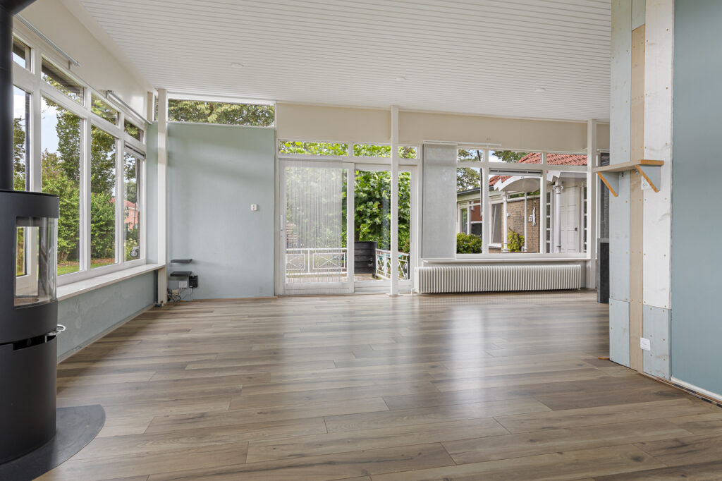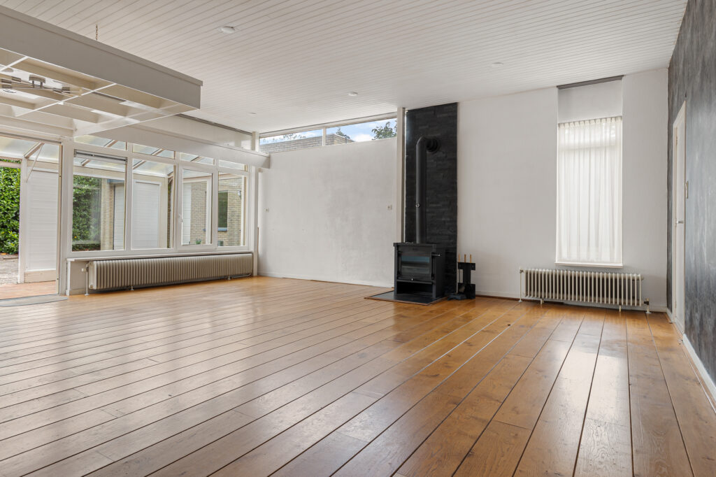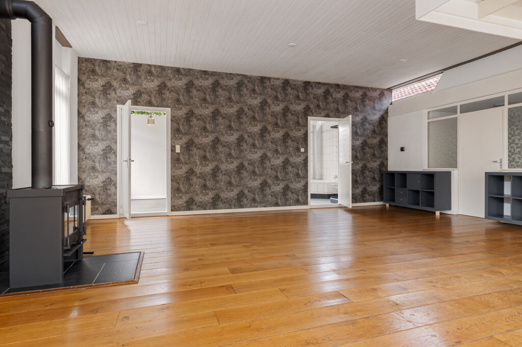 De hoofdentree van de voormalige school draagt nog steeds dezelfde functie en leidt naar een royale ontvangsthal. Vanuit deze ruimte zijn beide woningen te bereiken. In de eerste plaats die aan de straatzijde. Inderdaad, met vanuit de woonkamer zicht op de kerktoren. Verder kenmerkt deze ruimte zich door de pelletkachel, schuifpui naar terras en de open - moderne - keuken. De moderne keuken beschikt over een spoeleiland annex eetbar en diverse inbouwapparatuur. Afhankelijk van hoe de koper de ruimtes gaat verdelen beschikt deze woning over drie slaapkamers, een nette badkamer en een ruime bijkeuken met buitendeur. De tweede woning is aan de achterzijde gesitueerd en beschikt over een grote leefruimte. Opvallend hier is de aanwezigheid van een sfeervolle houtkachel en aangrenzende veranda. Een nette keuken en badkamer completeren het geheel samen met de slaapkamer aan de tuinzijde. Let op, een eigen entree voor de woning aan de achterzijde is relatief eenvoudig te realiseren. Tot slot op het gebied van duurzaamheid. De spouwmuren zijn nageïsoleerd, er is sprake van dak- en glasisolatie waarbij er ook twaalf zonnepanelen zijn geplaatst!