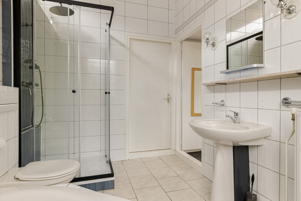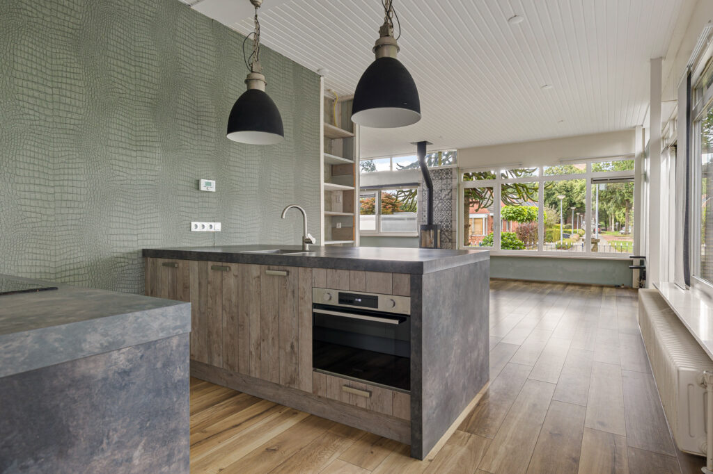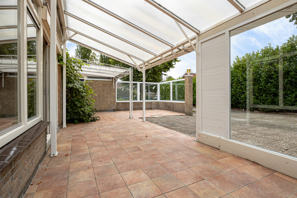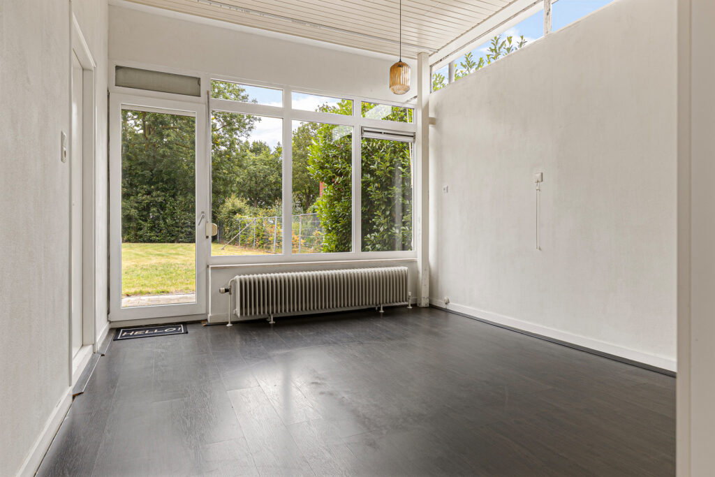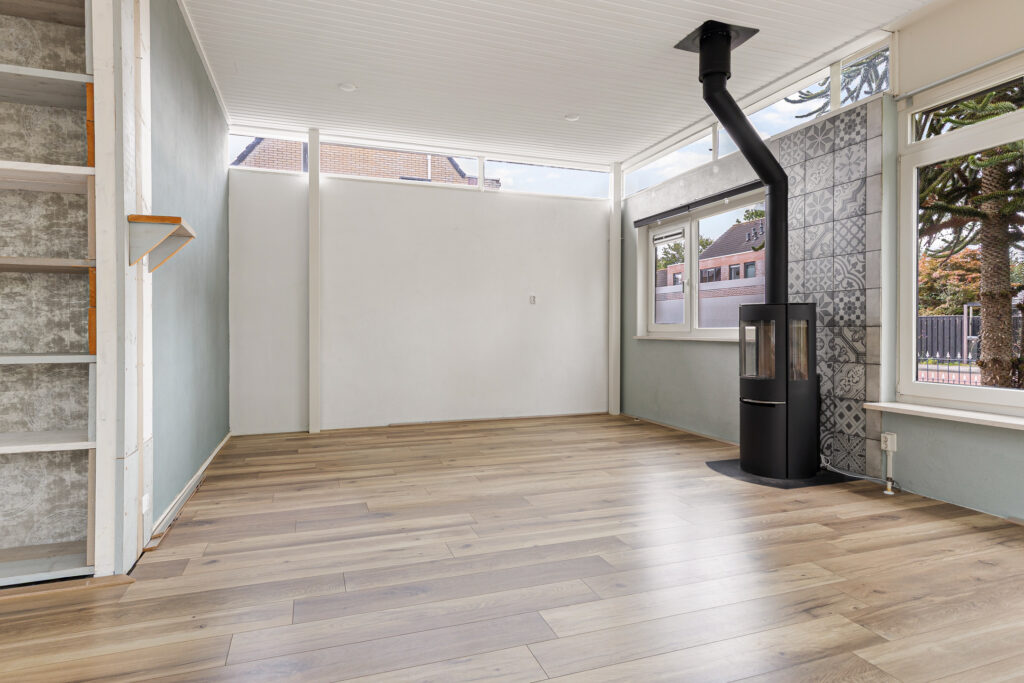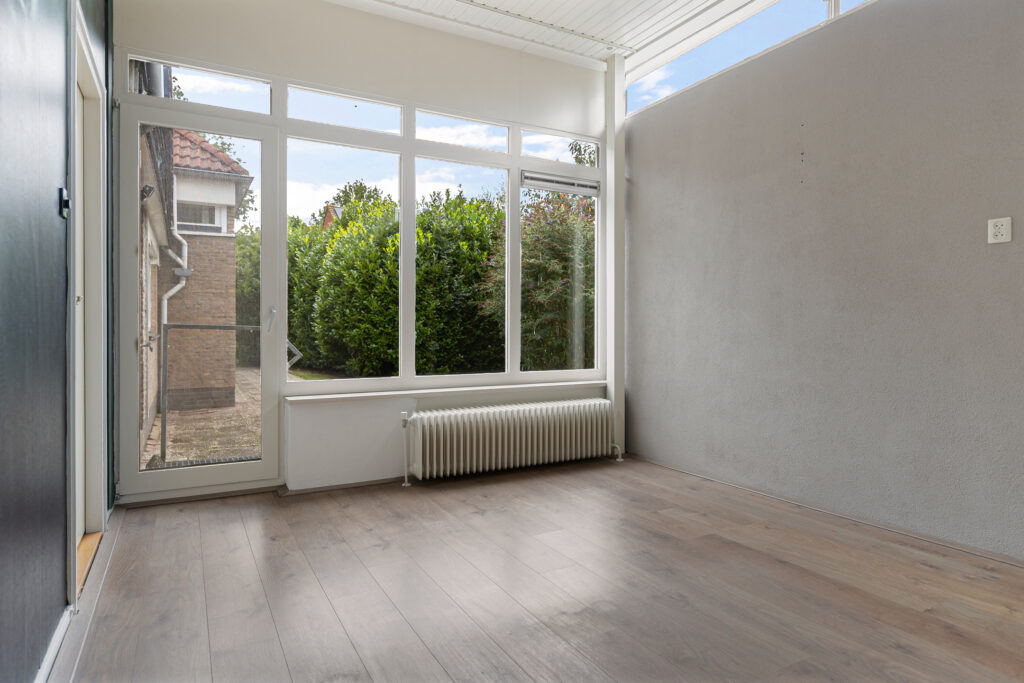 De hoofdentree van de voormalige school draagt nog steeds dezelfde functie en leidt naar een royale ontvangsthal. Vanuit deze ruimte zijn beide woningen te bereiken. In de eerste plaats die aan de straatzijde. Inderdaad, met vanuit de woonkamer zicht op de kerktoren. Verder kenmerkt deze ruimte zich door de pelletkachel, schuifpui naar terras en de open - moderne - keuken. De moderne keuken beschikt over een spoeleiland annex eetbar en diverse inbouwapparatuur. Afhankelijk van hoe de koper de ruimtes gaat verdelen beschikt deze woning over drie slaapkamers, een nette badkamer en een ruime bijkeuken met buitendeur. De tweede woning is aan de achterzijde gesitueerd en beschikt over een grote leefruimte. Opvallend hier is de aanwezigheid van een sfeervolle houtkachel en aangrenzende veranda. Een nette keuken en badkamer completeren het geheel samen met de slaapkamer aan de tuinzijde. Let op, een eigen entree voor de woning aan de achterzijde is relatief eenvoudig te realiseren. Tot slot op het gebied van duurzaamheid. De spouwmuren zijn nageïsoleerd, er is sprake van dak- en glasisolatie waarbij er ook twaalf zonnepanelen zijn geplaatst!