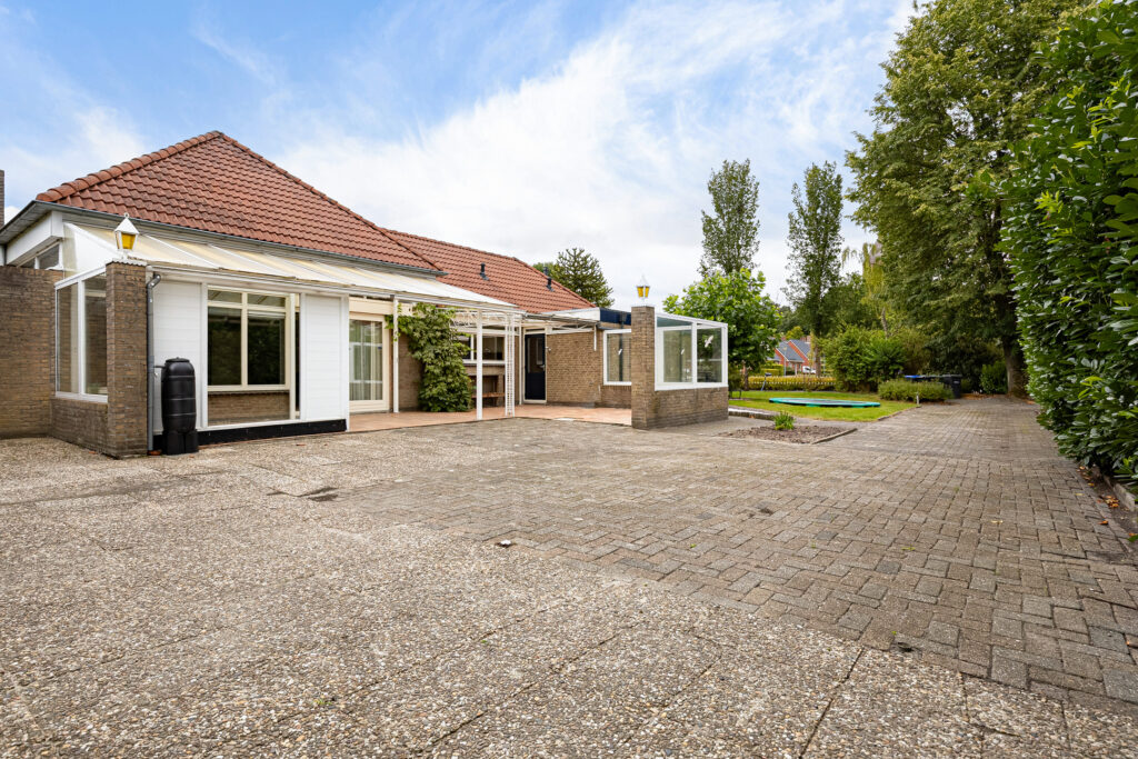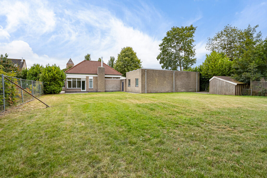 In 1975 werd in Slochteren een nieuw schoolgebouw gerealiseerd die net geen twee decennia dienst zou doen als zodanig. Al in 1993 werd het onderwijs op deze locatie gestaakt en is het schoolgebouw in gebruik genomen als woonruimte. Vanwege de grootte en indeling bood en biedt het daarbij een breed scala aan mogelijkheden. De laatste jaren werd het namelijk gebruikt voor dubbele bewoning, waarbij beide gezinnen over eigen faciliteiten beschikten. Naast dubbele bewoning, mantelzorg of separate woonruimte voor ‘inwonende’ kinderen is het gebruik als kantoor of beroep aan huis ook denkbaar. Hiervoor is de aanwezigheid van een royale, dubbele garage annex schuur van circa zeventig vierkante meter mogelijk ook wenselijk. Helemaal omdat deze ruimte ook nog eens in spouw is gemetseld en voorzien van een dubbele sectionaaldeur. Tel daarbij het perceel perceel van ruim achttienhonderd vierkante meter en het mag duidelijk zijn dat het hier niet om een ‘standaard’ vrijstaand woonhuis gaat. Als klap de vuurpijl beschikt de woning over een vrij en fraai uitzicht richting de dertiende eeuwse kerktoren van het dorp!