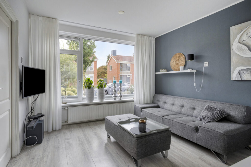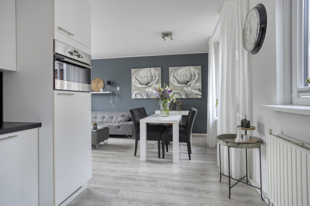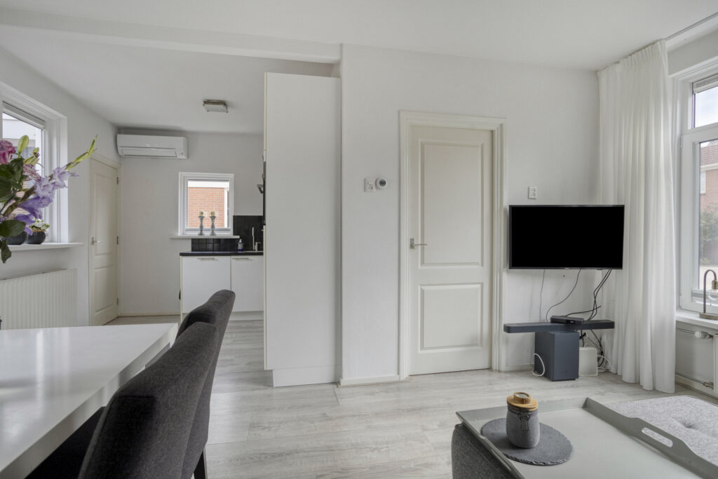 Bij binnenkomst valt meteen de lichte en gezellige woonkamer op. Dankzij de grote raampartijen geniet je hier de hele dag door van veel natuurlijk licht. De moderne keuken is praktisch ingedeeld en van alle gemakken voorzien – ideaal voor wie graag kookt of samen uitgebreid wil tafelen.